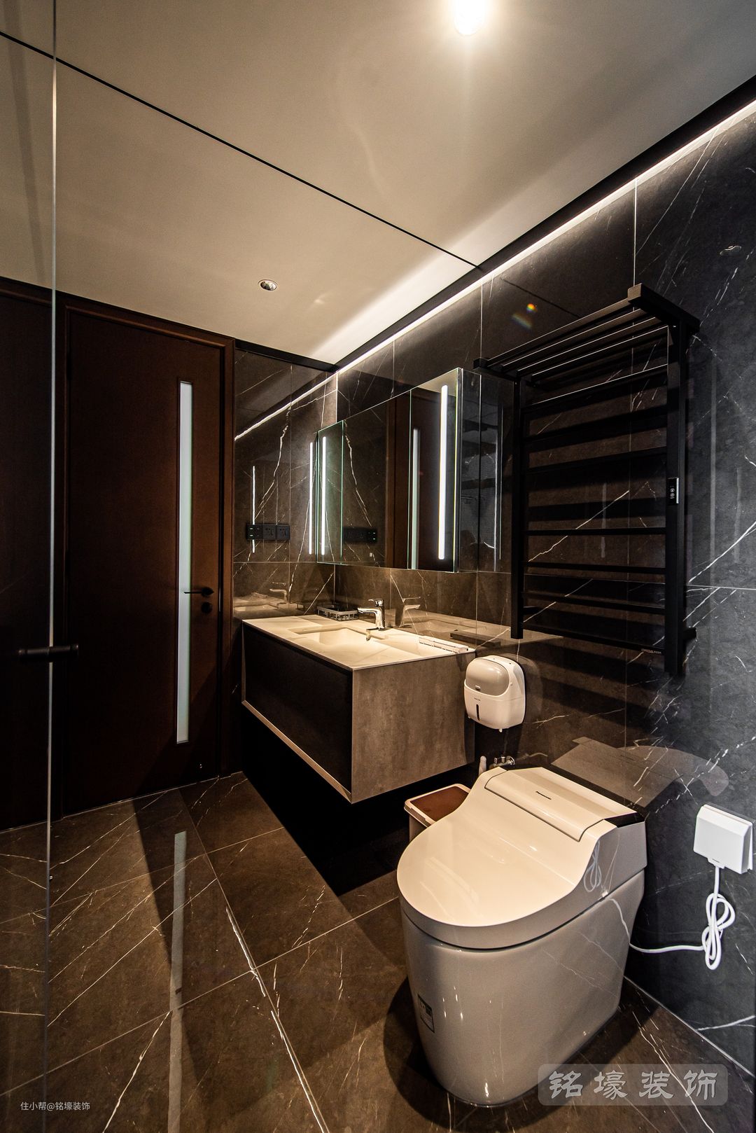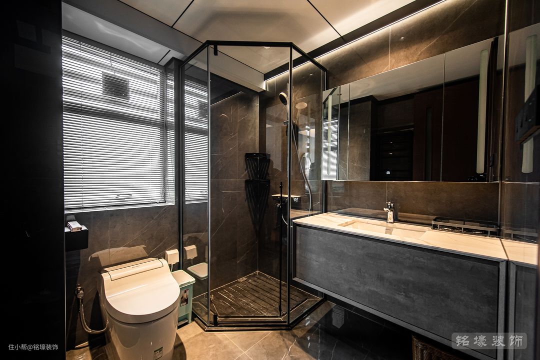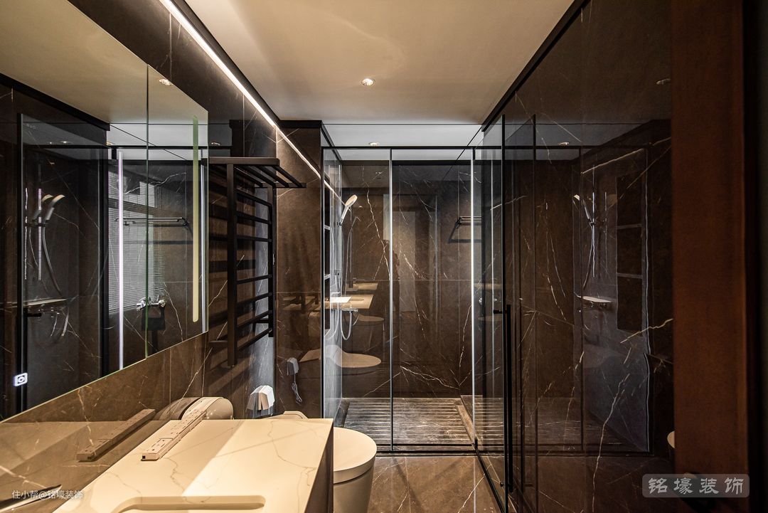 使用频率极高的卫生间在过去的装修设计中总容易被忽略,如今其舒适度却逐渐成为决定生活品质的重要因素。主卫做了干湿分离设计,干区配备造型简约的卫浴柜,以及提升居住体验的智能马桶和电热毛巾架等。 整体设计也遵循现代简约的原则,干区湿区功能互不干扰,在方寸之间实现最佳的空间利用。