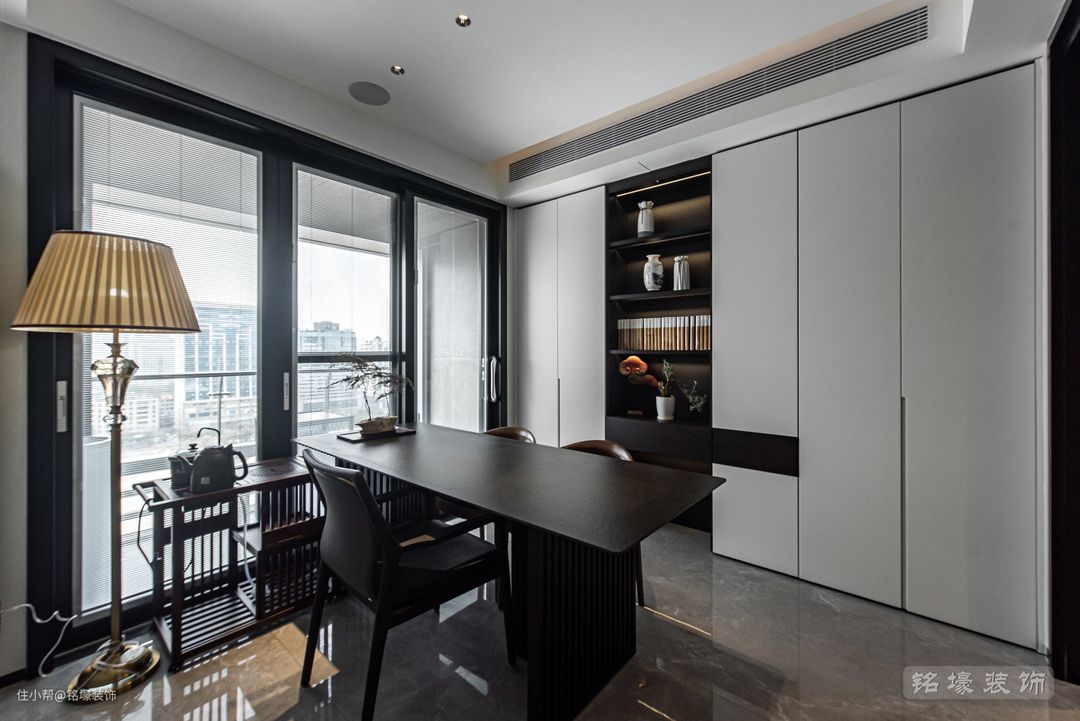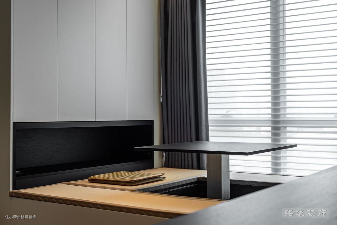 这家的男女主人各自拥有一个独立的休息区域,“在家里,如果能够拥有属于自己的、珍贵的、良好的居心地,或者是能够找出那样的地方,在享受居住的欢愉中,是一件极为重要的事。” 进门时视线正对的书茶房便是男主人的居心地了,还专门留了一个小阳台作为抽烟区。闲暇时独自沏上一壶茶、翻翻书,客人到访时也是一处待客的好地方。特有的古韵风情和文化沉淀,能让人感受到内心的平静。