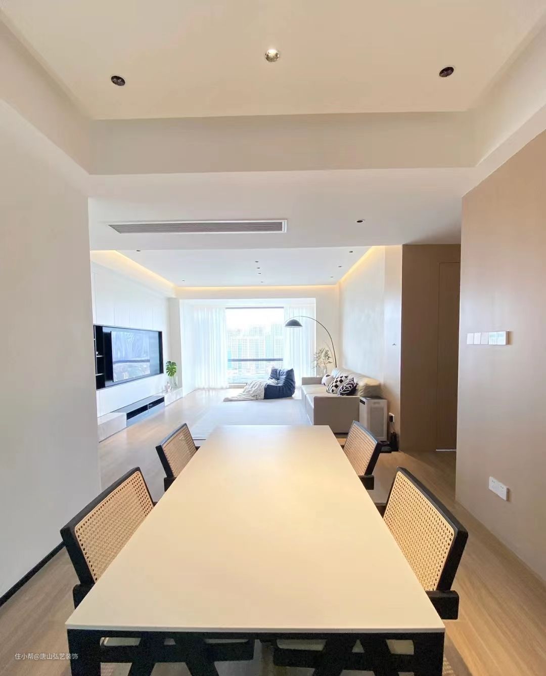 餐厅选用了无主灯代替了传统的大吊灯,传统的吊灯压层高、易落灰不好清洁,无主灯的设计让人视觉上觉得风格更加统一。