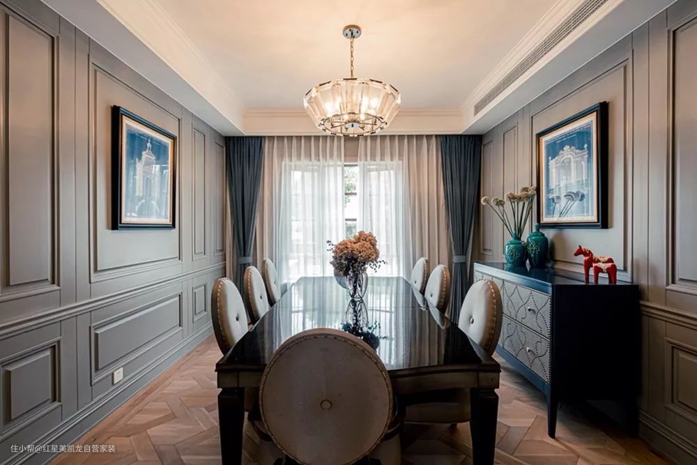“风格,太太坚持要现代美式。” 果果妈对风格有自己的执念,要“现代美式”,护墙板线条追求轮廓立体、硬朗,而非柔和、圆润,木饰面的线框造型、颜色都是反复打了数十次样才确定。