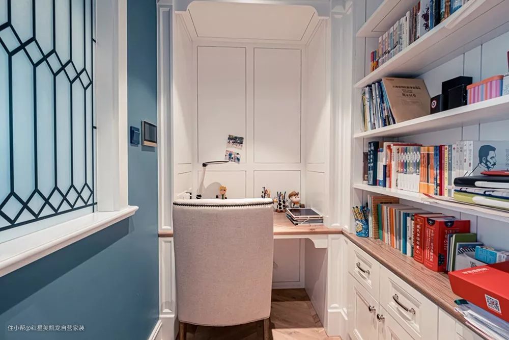 走廊是孩子们的乐园,弹琴、看书、玩ipad。本屋还藏着一个最大的彩蛋,走廊区做了吊顶,顶上藏了个小阁楼,是个超大储物空间。