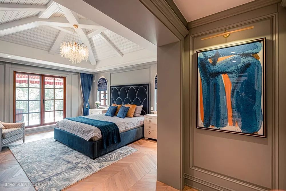 主卧与主卫是一个大套间,保留了别墅原来的斜坡顶造型,并用木饰面做了铺装,主人对于木头独特的情怀让整个空间被木质充满,显得温润、有质感。 TIPS:干货分享 斜坡顶的木铺装才是最考验木工手艺的,稍有一点差池就会全盘皆错,如果不是找了手艺最好的木工,不断拼接、试错,花大量时间打磨工艺,几乎不可能完成。