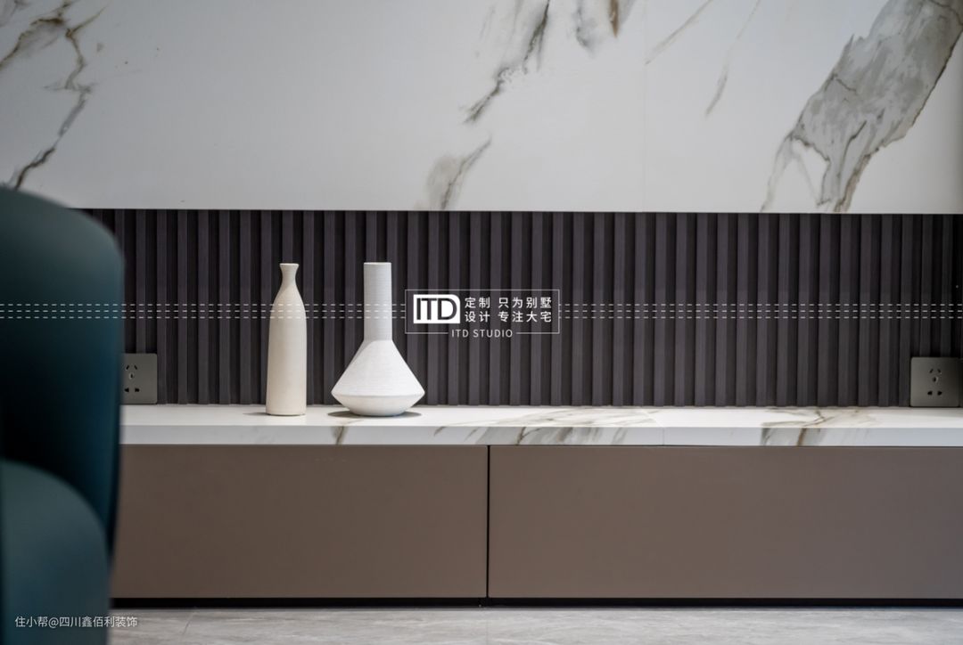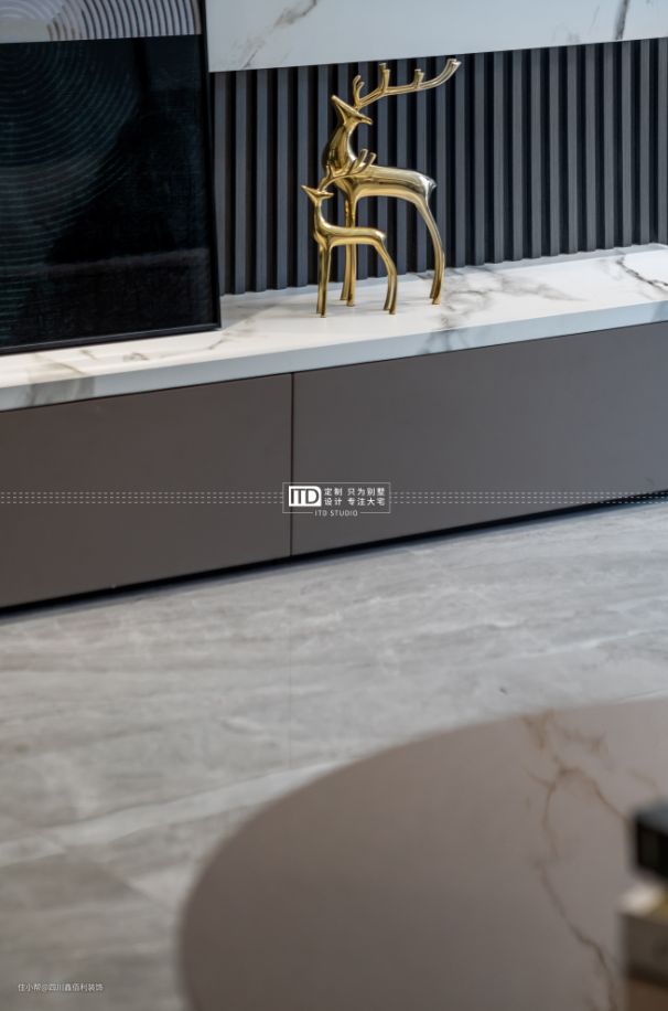 在展厅挑选地地面材料的时候,业主妈妈也是一眼就相中了这个750*1500的灰色大板砖,大气联动的纹理让空间更显大气,让沉默不语的空间有了生命的流动感。