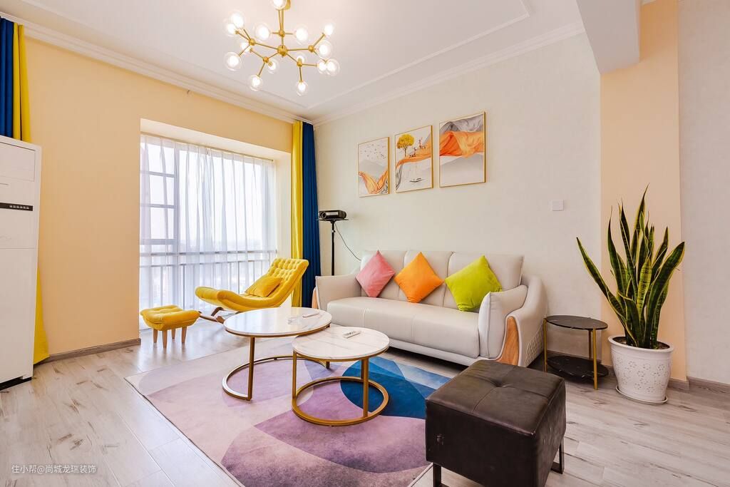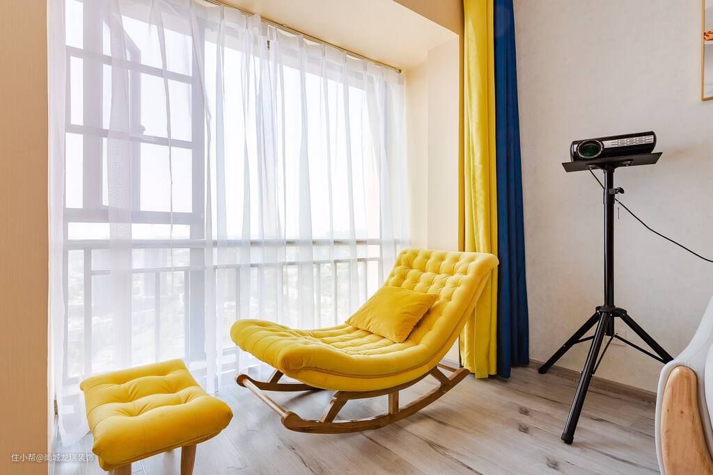 沙发的色彩选择撞色,中和了空间的冷淡的氛围,色彩鲜艳的抱枕,提升了空间的层次感,巧妙地通过色彩搭配和设计,减弱空间的生硬冷涩,保证视觉效果的集中。
