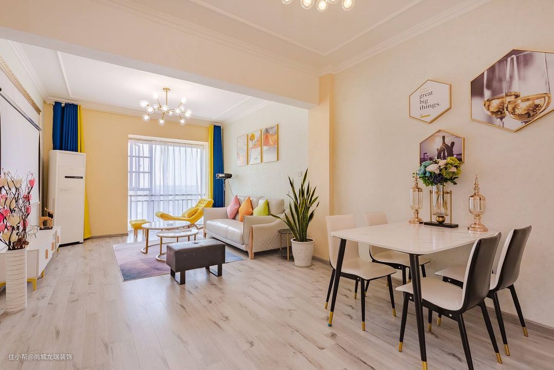从餐厅一眼望去,充足的采光保证了空间的通透美感,透明窗纱的设计保证了空间拥有足够的采光,即高级又舒适。