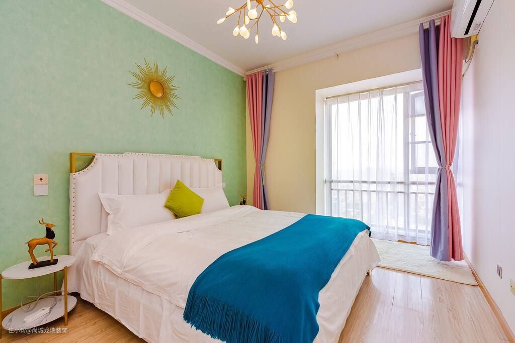 次卧的主要色彩搭配延续了主卧的选择买单时软包床头的设计让整个空间显得格外细腻且柔和,感觉时光经过此处都变得温柔了些许,巧妙地色彩给人一种震撼的错觉,但整个空间的设计并不喧宾夺主,整个空间拥有充足的采光,显得空间更加大气。
