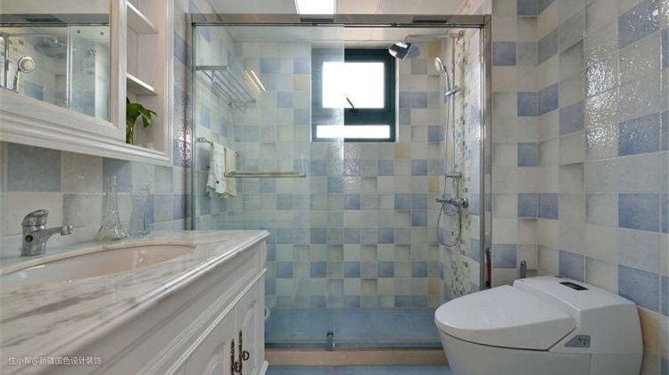 卫生间面积适中,做了干湿分离的处理,蓝蓝的色调让人很舒适,有一种像海洋里的感觉。