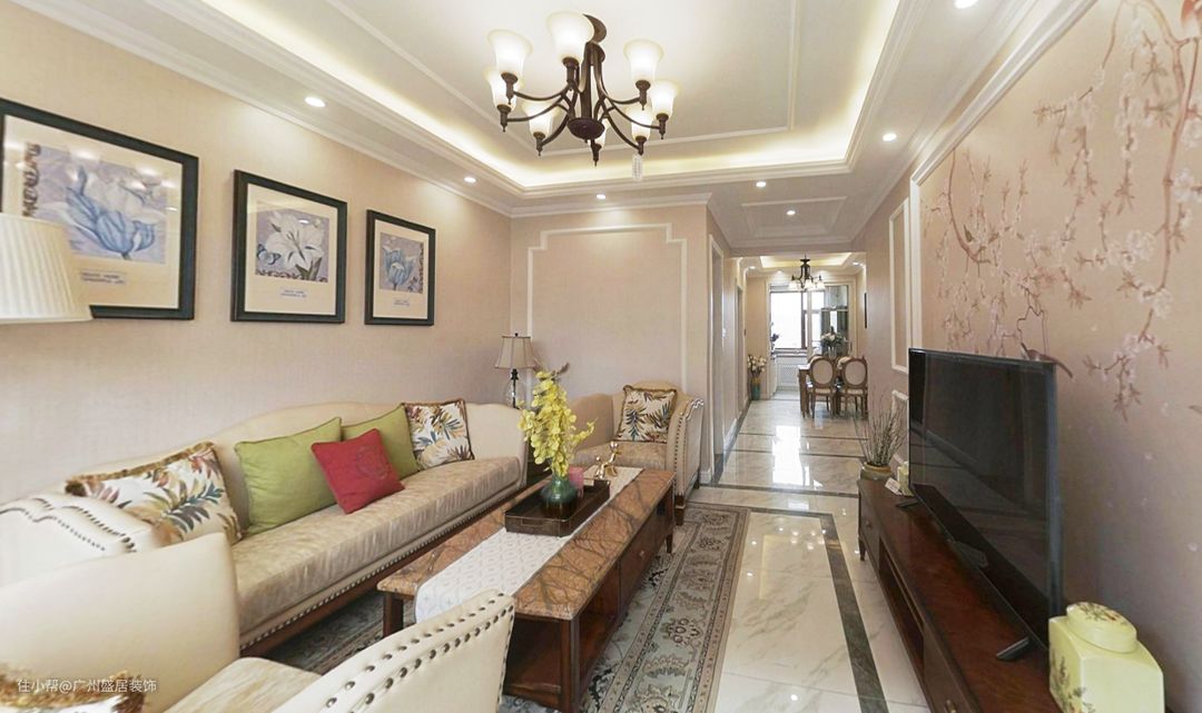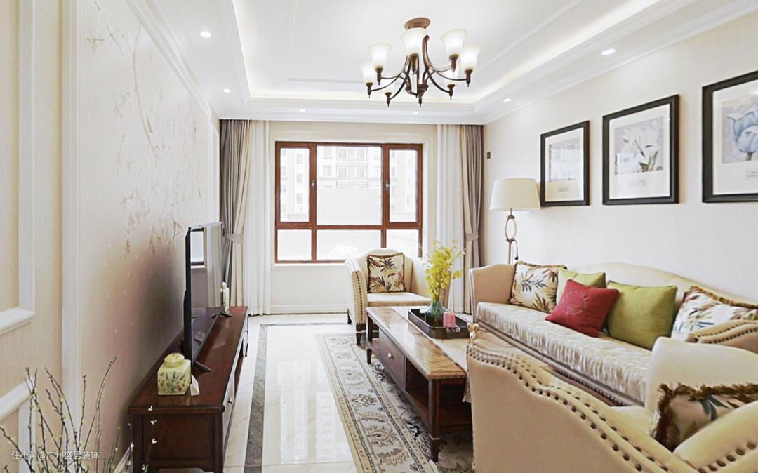 同时,在客厅的整体布局上采用了中式的对称格局。