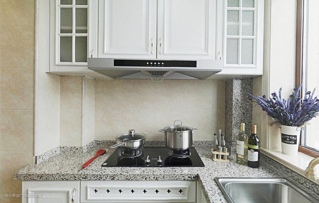 选择斑点式的大理石台作为流理台最为关键的原因是比起其他的选材它更加耐脏。同时,大理石还具有耐磨性高、耐高温的优点,作为流理台再合适不过了。