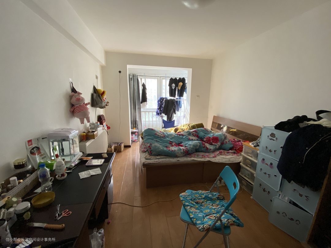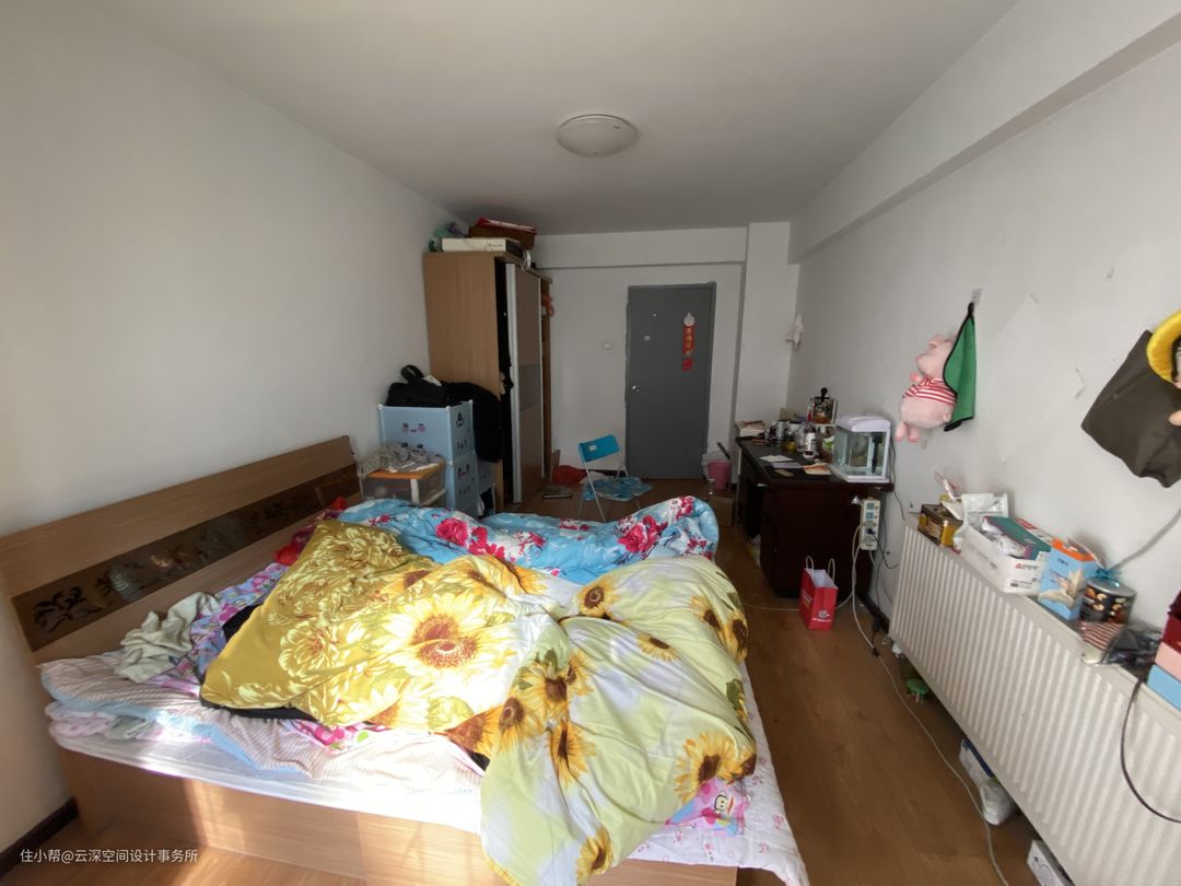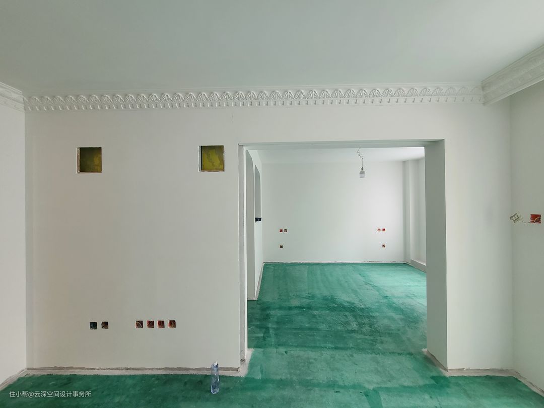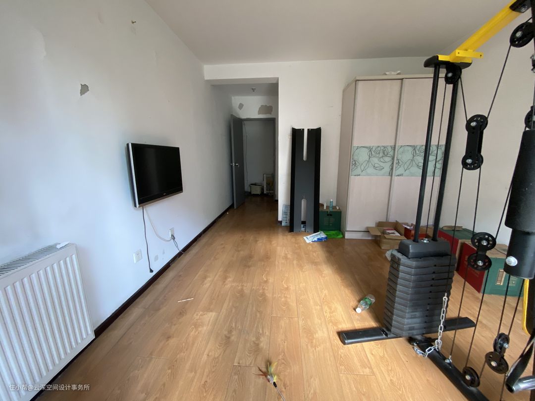 实现过程,将连接两间卧室的非承重墙体拆除,预留门洞后期安装石头纹玻璃移门