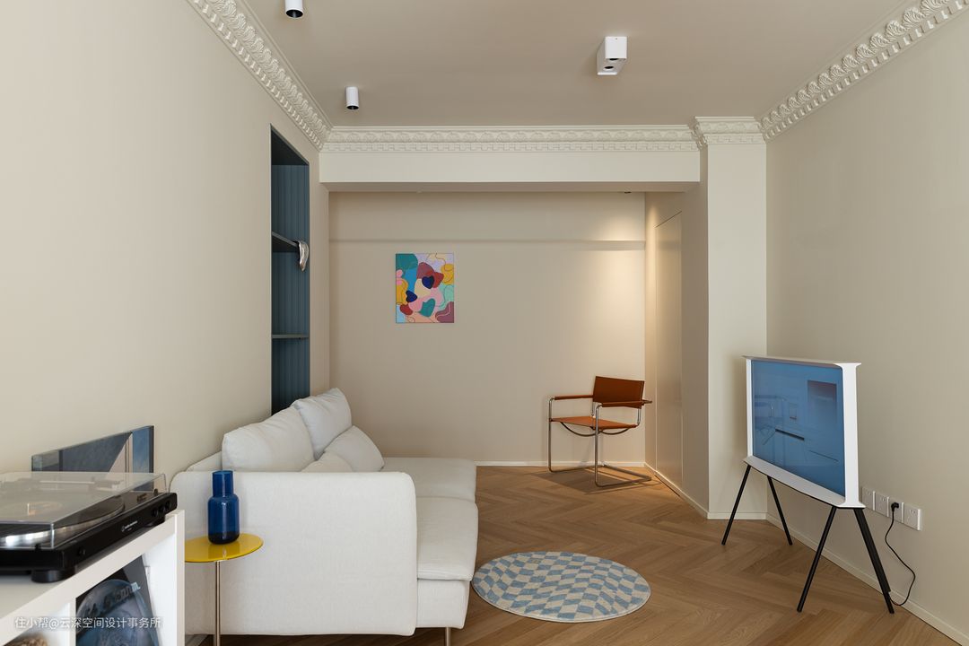 说在前面 和业主初次沟通看到户型图,立马就想到了爱情公寓火出圈的“跑道房”,本案最大的特点就是这个暗黑无光的“跑道”,如何让它变得通透明亮是首要任务; 说来也巧,设计之初:“奶油色”还没有这么流行,我们在沟通时,业主比较喜欢明亮、温暖、简洁、随性、慵懒舒适的居住环境,我们根据客户喜好选择设计了这个漆色—佐敦NCS S 1005-Y10R,意外贴上“网红”标签,这算不算是走在了5G时代的前端? 在与业主敲定好轻法式的整体风格后,我们拆墙引光、重布格局、优化动线,通过8处空间改造将70㎡暗黑跑道房逆袭成为法式慵懒治愈系之家...