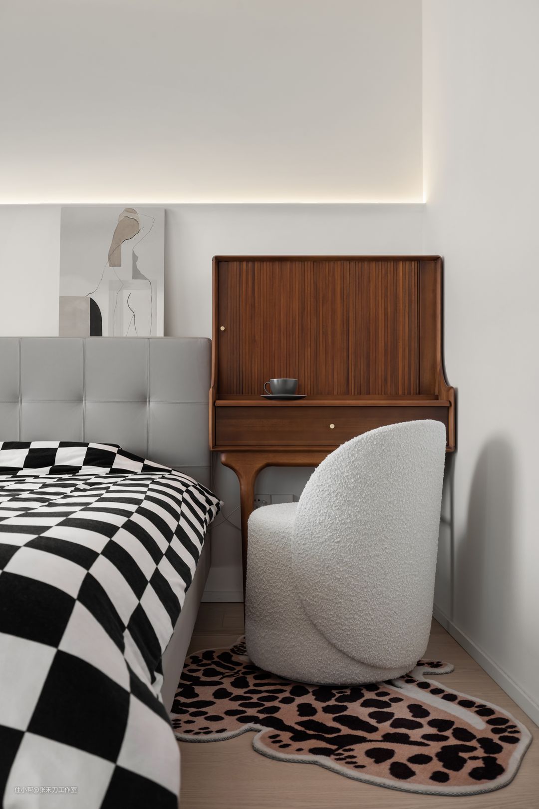 起居空间与主卧之间同样选择了开合关系,让通透感再次得以延伸。