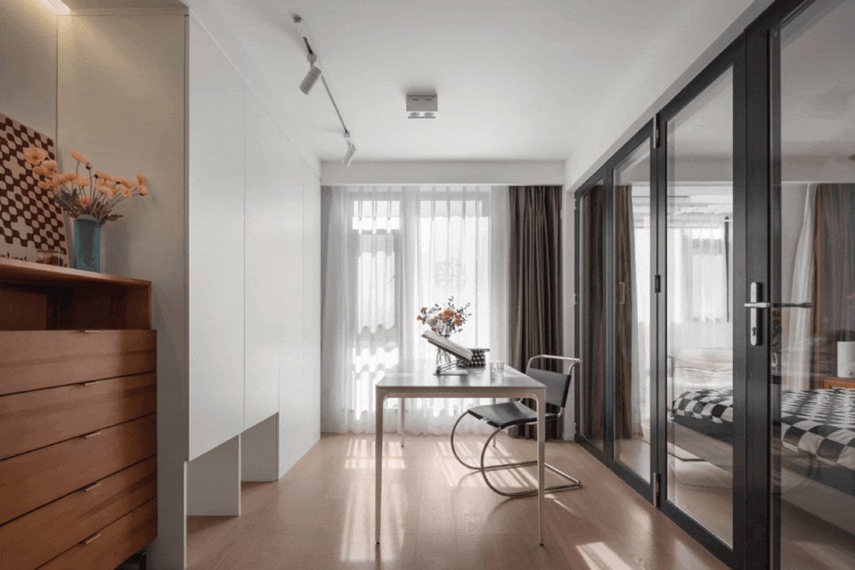 开合关系的多功能书房空间,打开后让公共区放大了一倍。