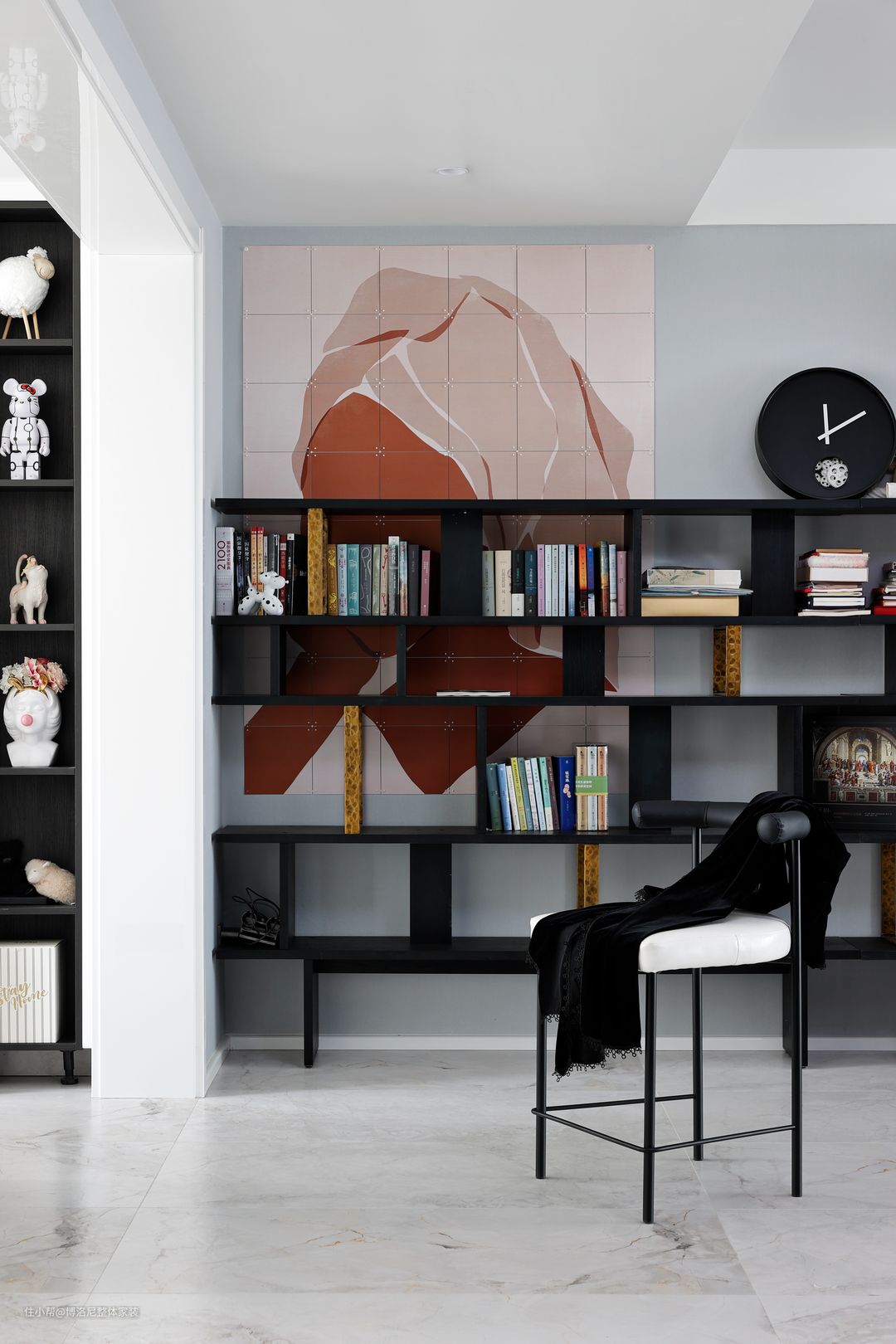 占用客厅的一角,极简的书架设计,简洁雅致,既有气质,也有个性,格调十足。悠闲地下午时光,读一本书,来弥补心中的空。