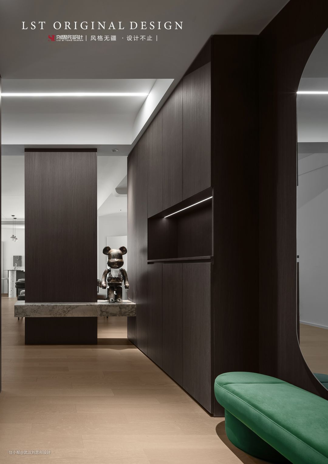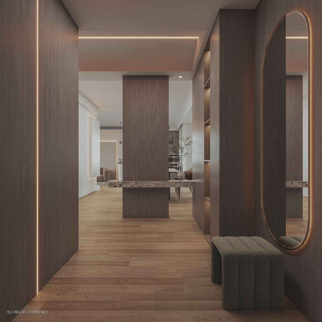 原有餐厅与大门相对,进门第一刻便可看清屋内动态,我们在玄关与餐厅之间增加一道端景墙,既能遮挡从屋外看向屋内的视线,同时也不影响玄关区域的采光。