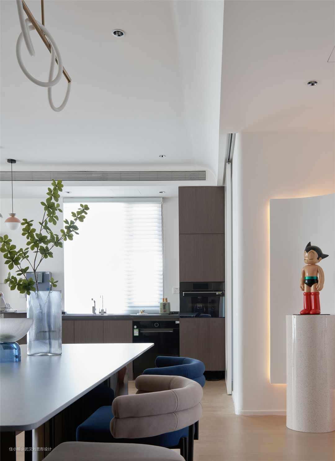 阿童木摆件: OLDDOT TOYS 旧點玩具; 餐桌:梵普森家具; 餐椅:希悦家居; 音符吊灯:威尼斯 Venice light 灯饰。