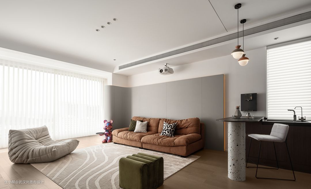 拆除阳台门后,承重墙的地方采用石膏板圆弧造型进行包裹,弱化承重墙的存在感,同时吊顶阴角处做出弧形衔接处理,与沙发背景墙相呼应,简约大气。