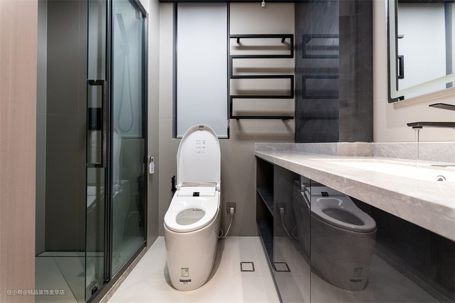 卫生间实现三分离效果,各功能区独立存在又紧密联系。台盆区做了加长设计,留出的台面可以放置更多洗漱用品。