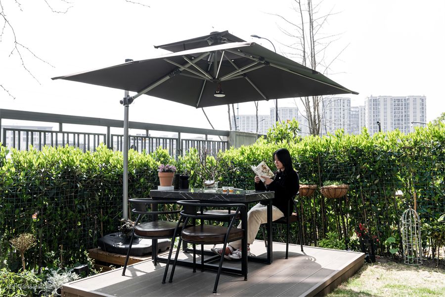 这套新居室最大的特点就在于,室外有一处空地,我们将它设计成一处可以享受下午茶的闲适场所,伞棚一架,清冽的冷萃咖啡一泡,摆上几份可口的小点心,这样的下午茶时间,实在太加分了!谁不想拥有呢?!