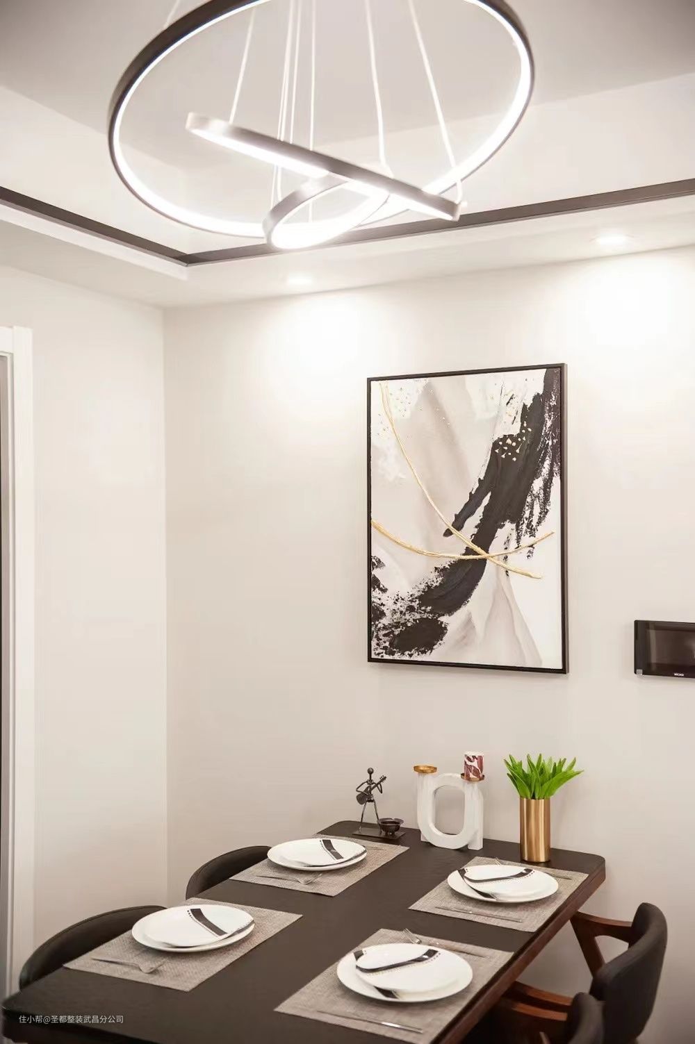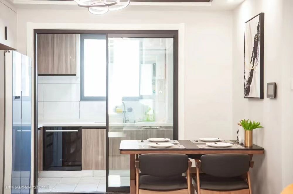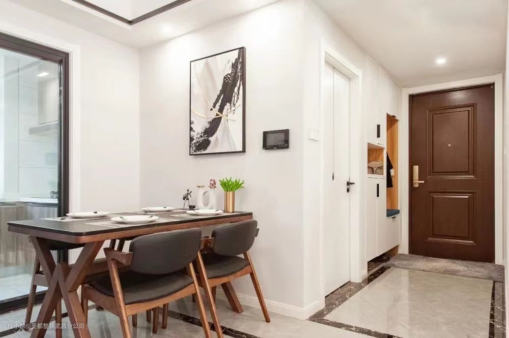 餐厨相邻,利用空间优势,安置一方胡桃木餐桌椅于此,并考究地摆放上精致的餐具和小摆件,颇具艺术气息。