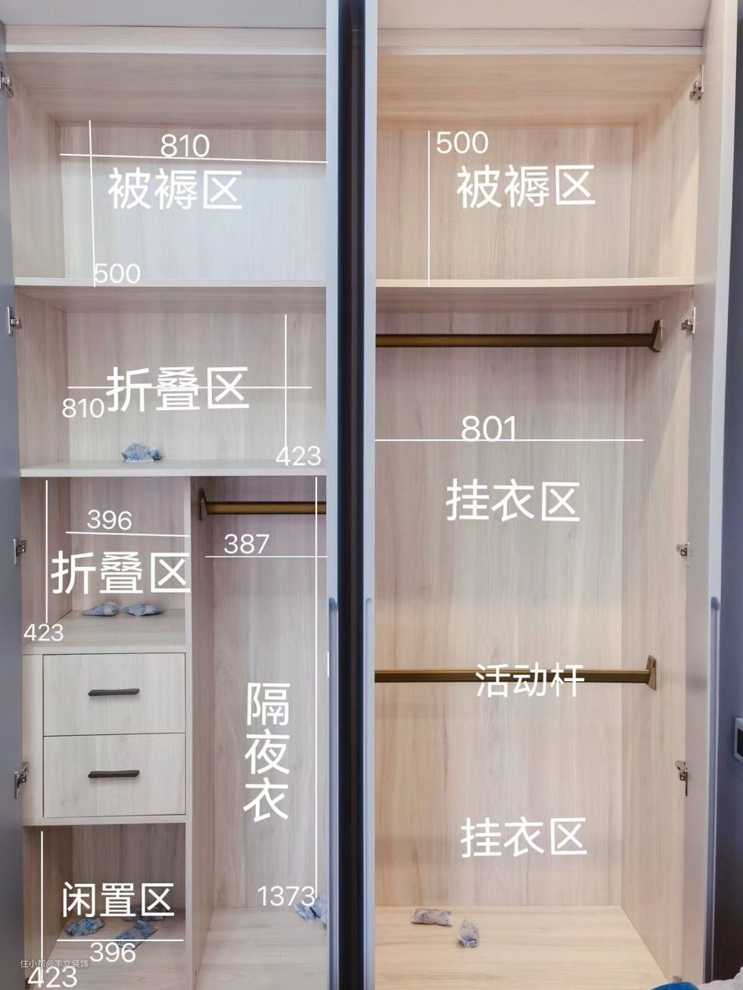 整墙衣柜尺寸及内部图,附图纸。 衣柜内部分布主要还是要根据个人生活习惯 现在趋势(懒)以挂衣区为主 主要考虑以下几点: 想好主要放什么(比如有些人要放行李箱) 一般分顶部放棉被;中部最常用的;底部闲置收纳 内部根据个人穿衣习惯,长衣一般1.5以上,所以设置了活动杆 最最重要还是根据个人习惯进行灵活变动
