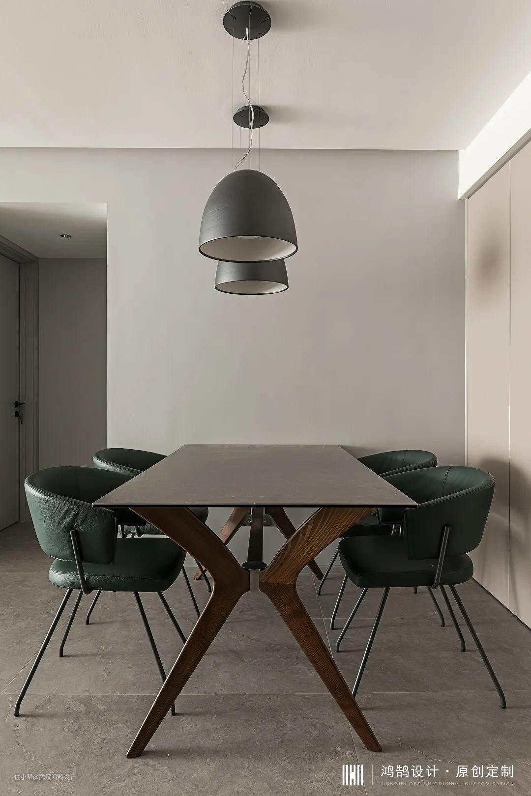 餐客厅径深长面宽窄,我们将大部分收纳功能区规划在了纵向位置,用作公共区域收纳空间,并且连接至玄关柜一体式设计。家具和灯具配合硬装干净清爽的基调,选择简约具有设计感的款式。客餐厅通长的情况下,只在餐厅加吊灯就足够,其余空间无主灯设计。