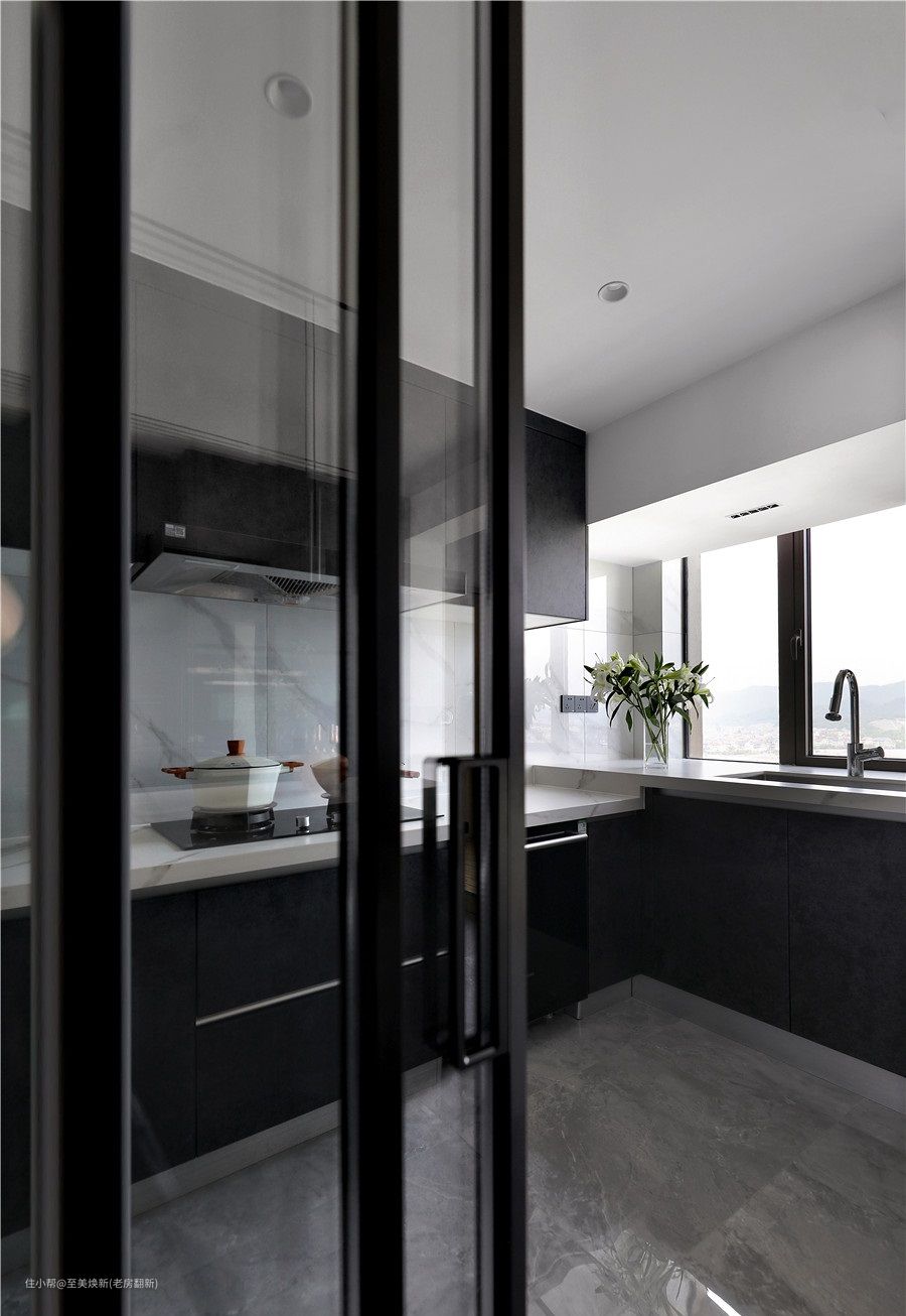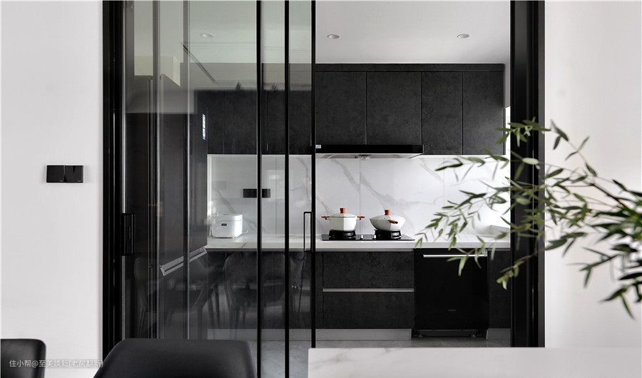 厨房用了三联式移门,超薄的玻璃+边框,更有现代感。