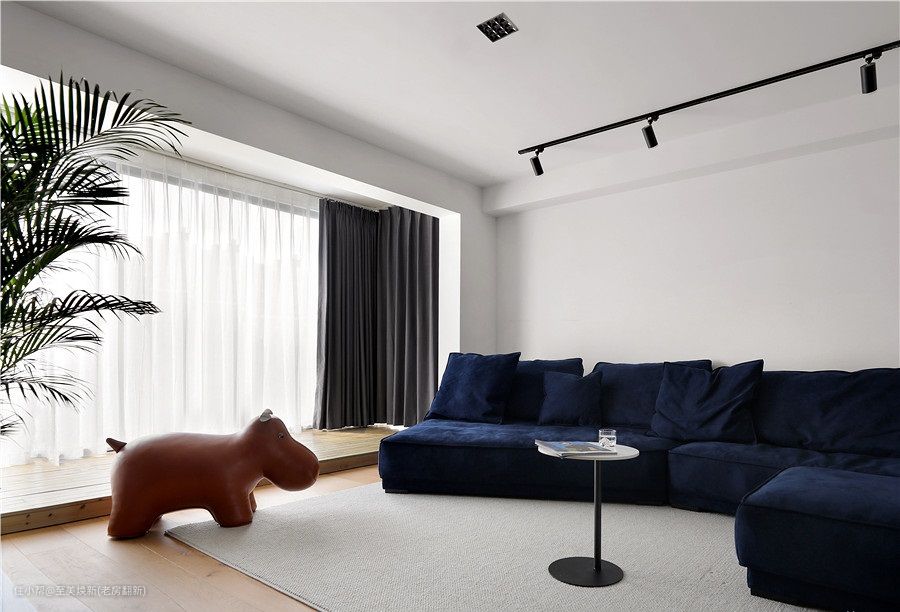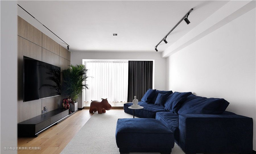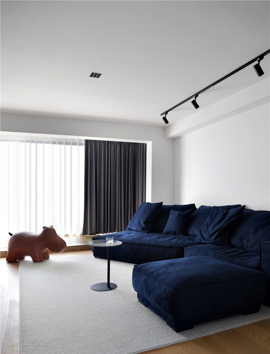 轨道灯+中间暗装筒灯的方式,更适合全屋无吊顶。优点是可自由移动、调整角度、自由增减灯具数量,其次,极简的造型干净利落,从视觉上可以扩大空间面积。