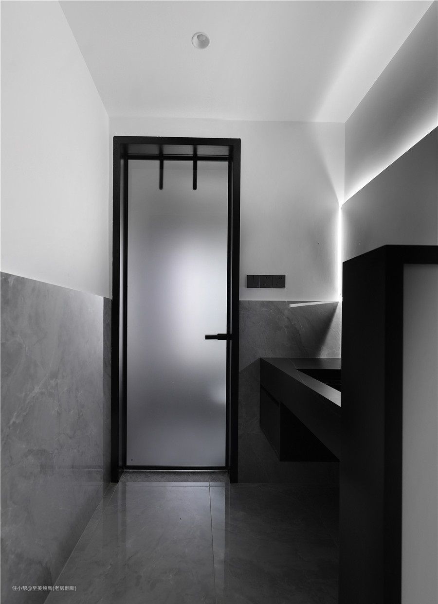 通往淋浴区的推门用了雾化玻璃,内部的隐私也得以保障。