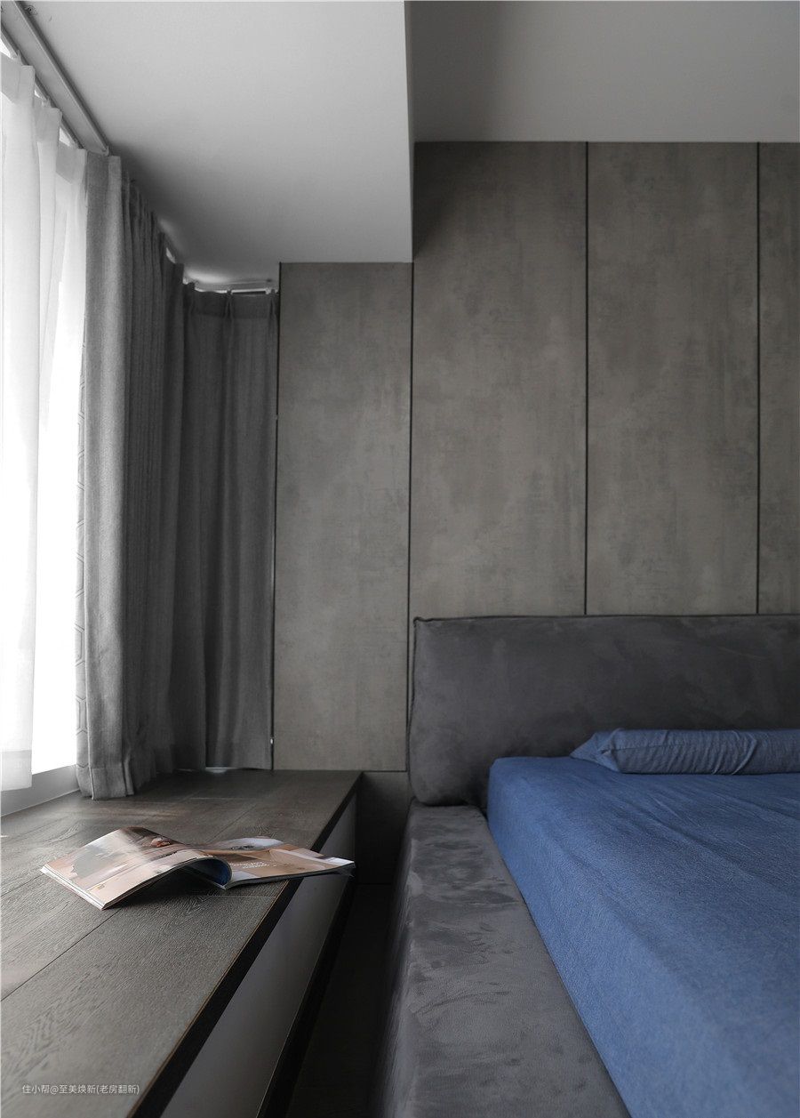 屋主喜欢看书、收藏手办和鞋子,从空间的设计里,也可以看出有很多的储物柜,既是收纳也是展示。设计亮点:① 现代性冷淡风,融入黑白色调的搭配,让空间感得到了进一步延伸。② 开放式厨房,独立西厨区。③ 卧室无主灯设计,地板上墙背景、不规则地板。