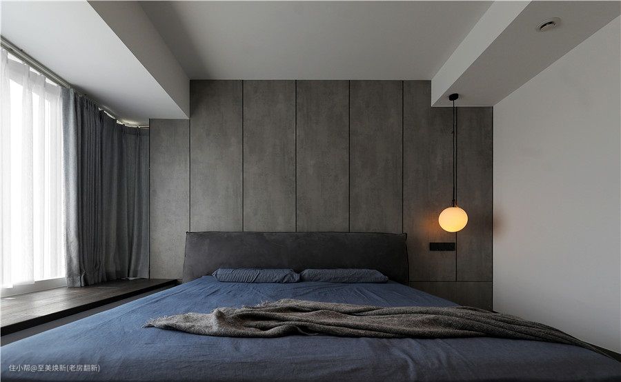 床品、床头吊灯、飘窗、窗帘都延用主卧同款。