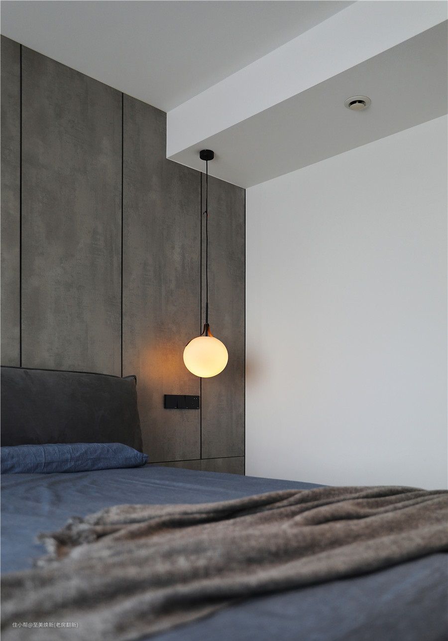 次卧在色彩搭配上与主卧相似,在细节之处做了调整,更面向大众。