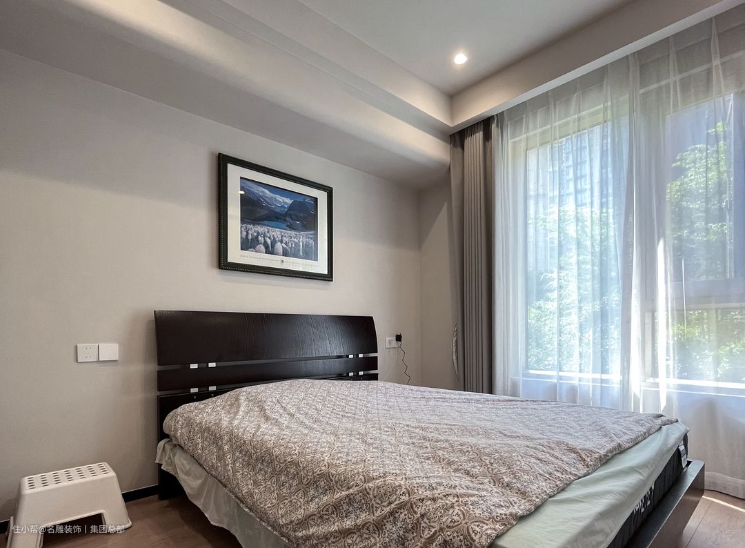 卧室与客厅统一风格,大面的落地窗给足了室内采光,使空间更加通透与开阔,柔软的配色满足我们对闲暇生活的无尽享受。