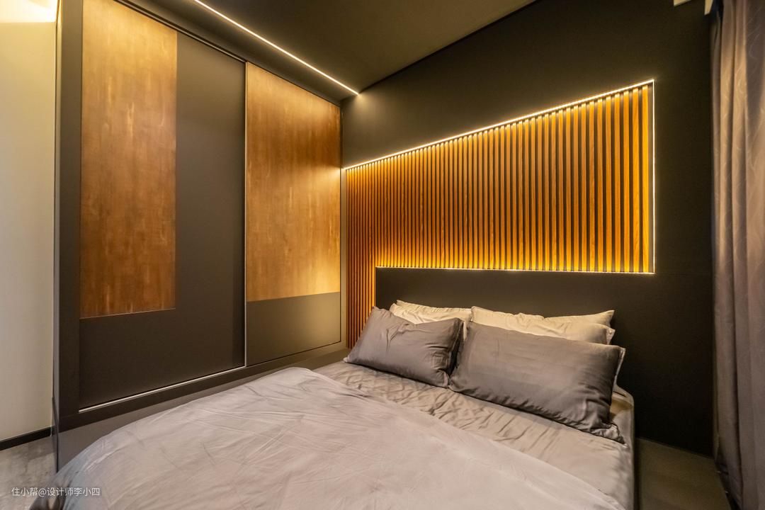 在次卧内设计灯光背景墙,当灯光照耀起来后,显得时尚个性。