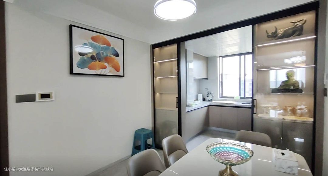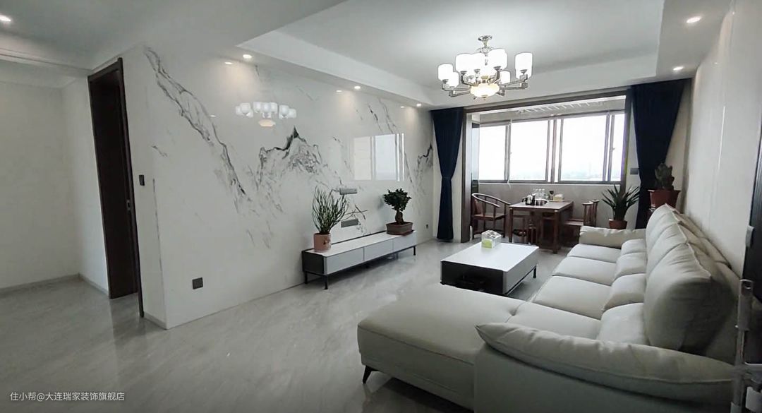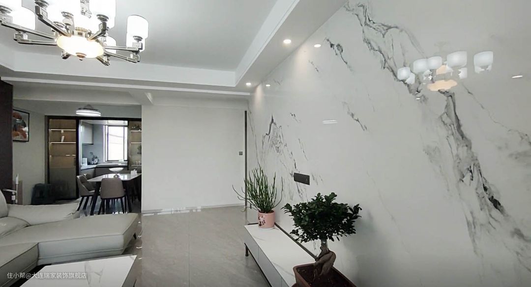 方案解析整体空间以现代简约为基调,局部点缀中式风元素,比如中式吊灯、红木案几、水墨岩板背景墙等等,干净利落的硬装和简单的软装相结合,没有多余的色彩和繁复的装饰,却将整个空间营造的时尚舒适和中式韵味并存,塑造出满足于一家人生活的舒适之家。客厅餐厅主卧次卧