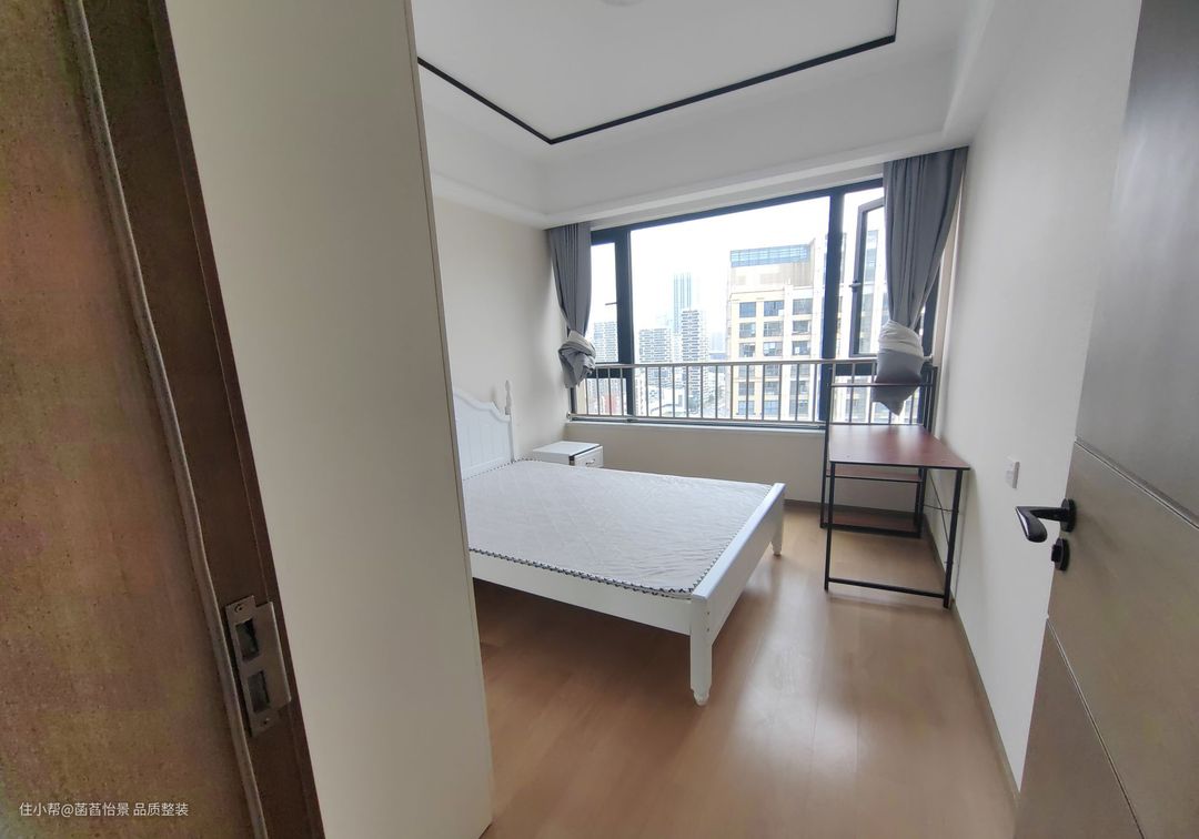 次卧的空间中,没有过多的装饰与布置,一组简单的定制柜子,做的到顶的设计,增加空间的收纳面积。