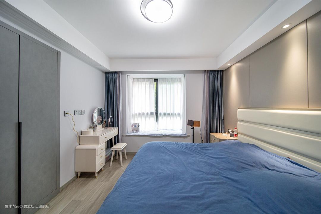 ▲主卧借助电视背景墙设计入墙式大衣柜,总体长3米深60公分的储物空间完全不输衣帽间,扩容还美观,超实用。