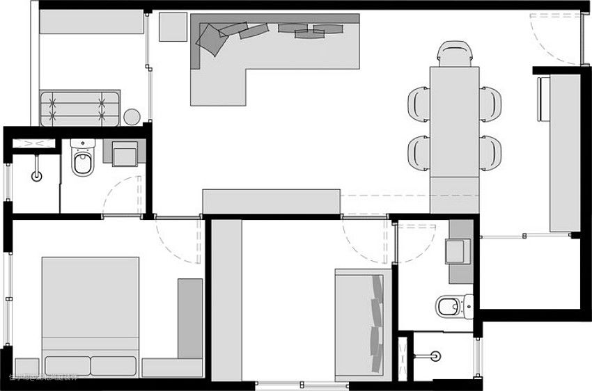 这个户型的整体格局方正,空间布局合理,功能区域分布清晰;客厅和餐厅是在同一个空间,比较紧凑的户型,所以家里在设计的时候,不单单考虑到美观,同时也要兼顾实用,而且也要简单一些,不需要多么豪华,多么大气。户型还算方方正正,室内采光不会受到任何影响。卫生间内做了干湿分离,保持居家清爽洁净,为健康生活加分。