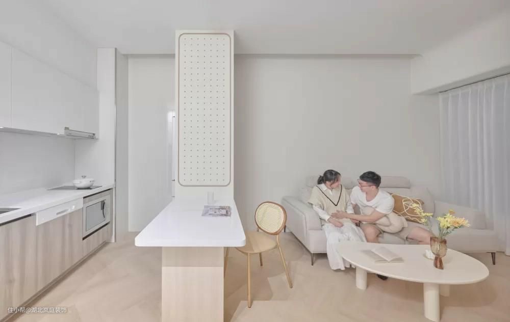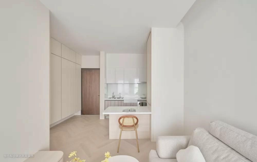 家里的整体色调以白色为主,是屋主喜欢的理智与克制的色彩。客厅的局部缀以富有质感的原木色,使得空间流露出符合一家人气质的艺术气息。屋主的要求是在满足生活品质的同时提高整屋的格调。现代简约的表达,是独特、干净、简约,但又不乏细节,令人有不断发现的惊喜。客厅空间足够宽敞,客餐厅之间不做隔断,用吊顶分隔空间,显得空间更立体。整体空间的布置都是为了显得空间宽阔,以白色作为主色调,增添空间的格调和采光。