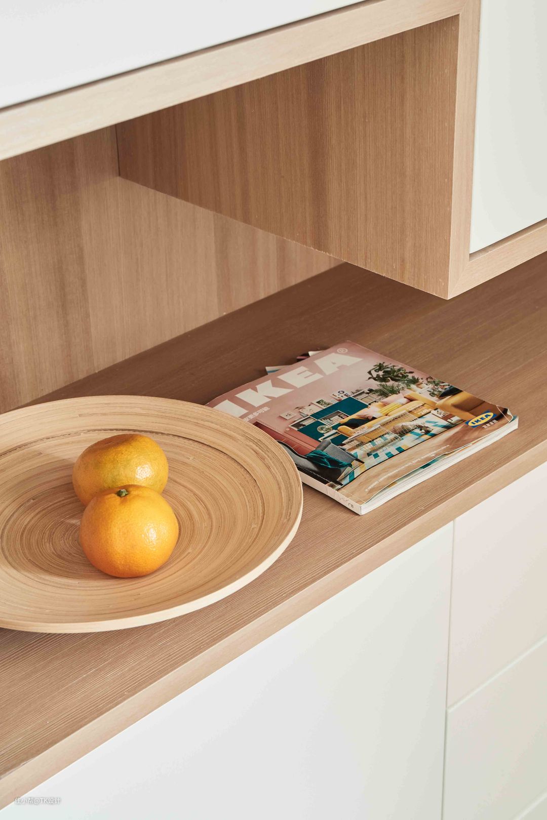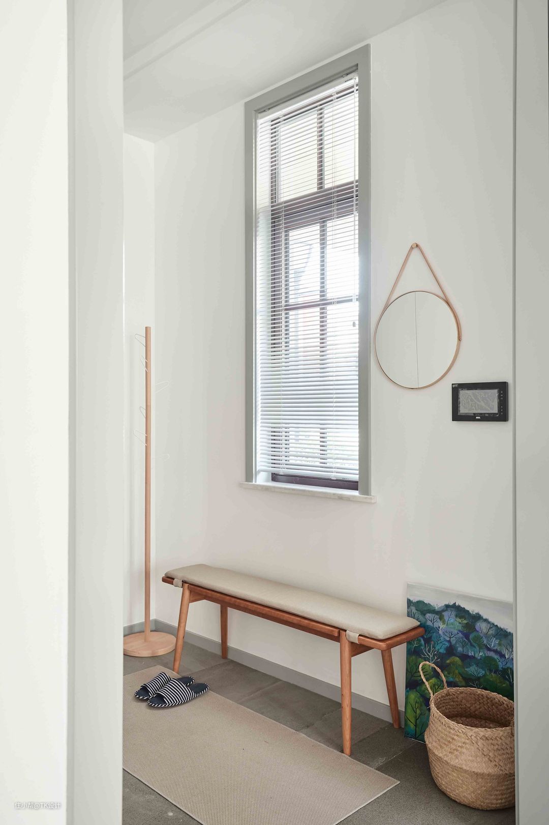 在玄关鞋柜的位置留空了一层,可以随手放置小物件儿。