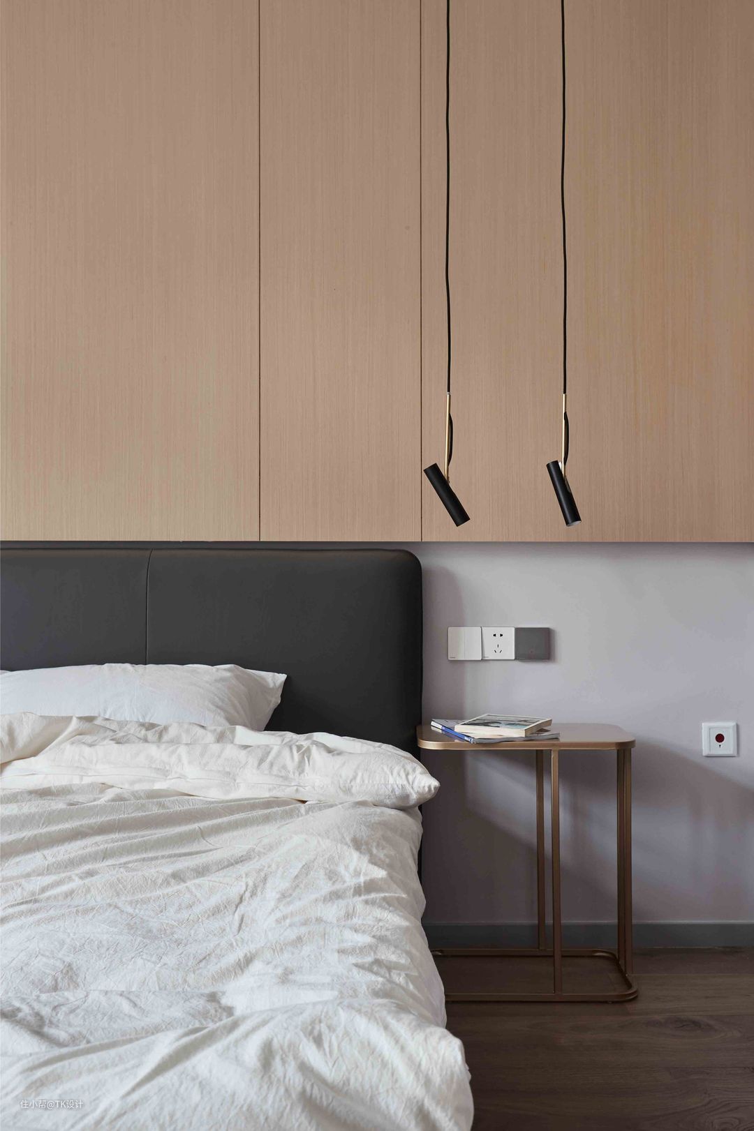设计师很爱的吊灯,线条感十足。 此外,木饰面下方仍预留了T5灯管的位置,以作补充光源。