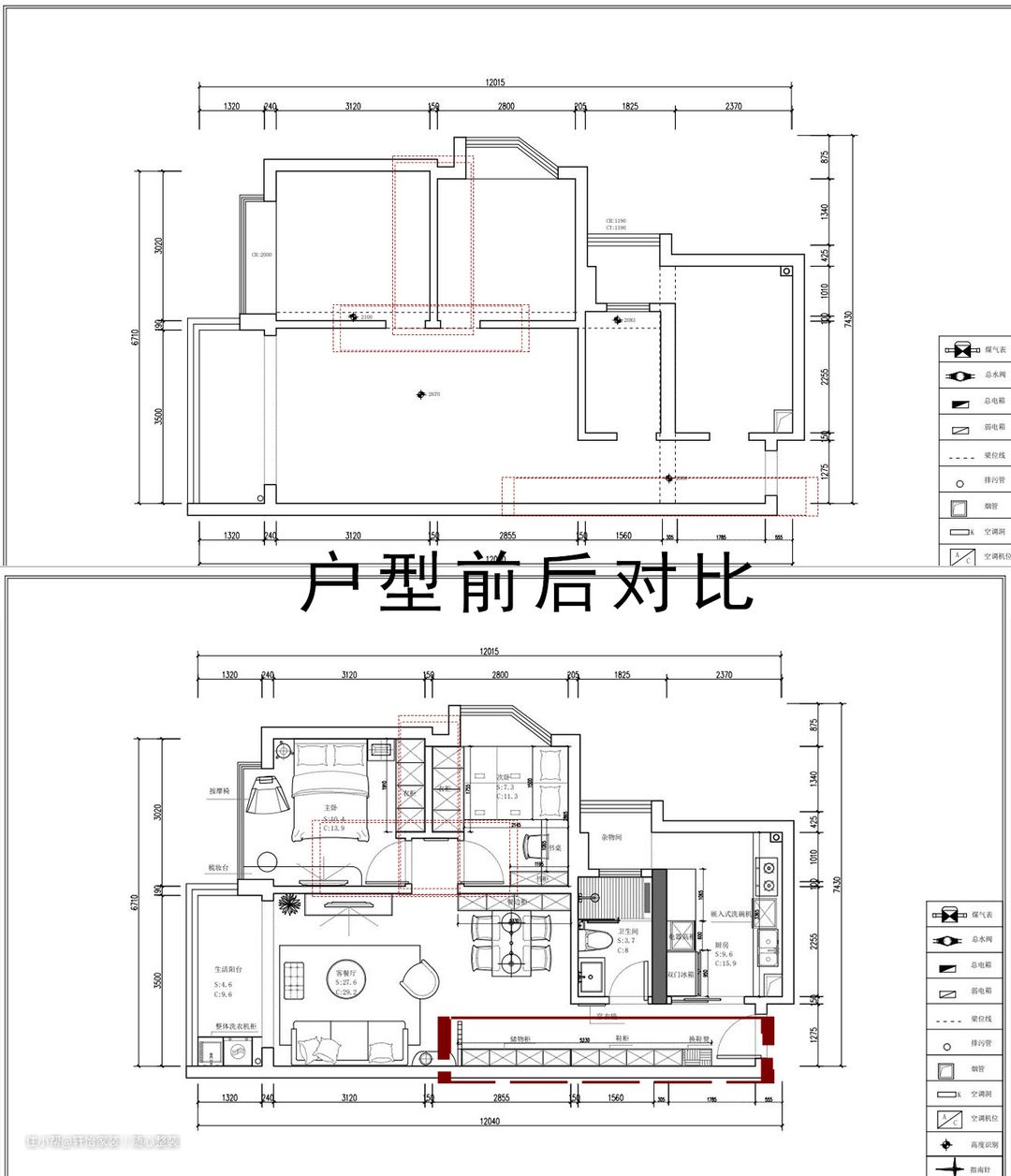 ✿゚改造思路: 1、入户玄关做一排整体到顶的鞋柜解决收纳问题,以及增加屏风设计进行遮挡,给人一进来就隐隐约约的感觉,过道比较长,采用造型比较美观的吸顶灯进行装饰,让人进门感觉眼前一亮。 2、厨房做了双橱柜的台面,大大增加了收纳功能。 3、两房间的门口采用对开模式,中间留个转折的过道,保证了私密性,解决了背景墙的长度,中间过道放一幅大的装饰画作为端景。 4、儿童房并排飘窗放窗,跟衣柜相结合,充分利用空间,不喜欢榻榻米的业主可以买床刚好嵌入进去,并且解决了书桌跟书柜的问题。