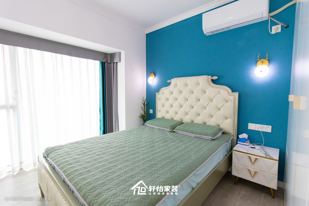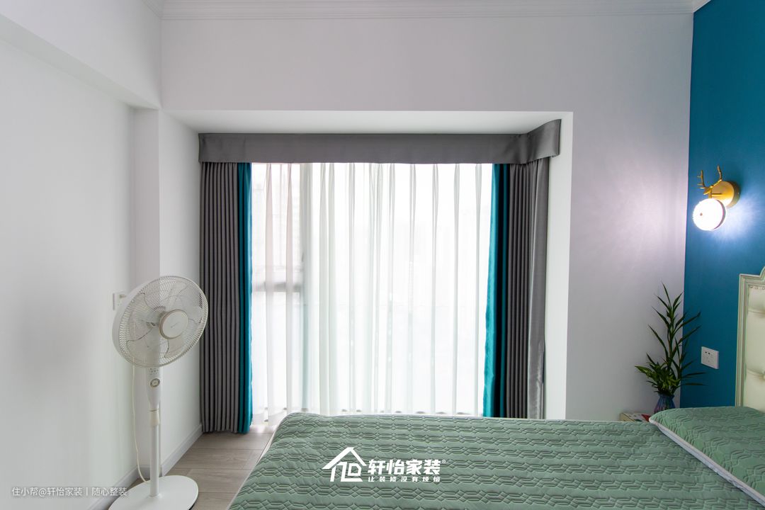主卧的墙面延伸了开放空间的白色系,将卧室的窗改造成落地半封窗,既增加空间的舒适度,使人的视觉效果更加明朗,同时让整个空间度亮堂了不少。