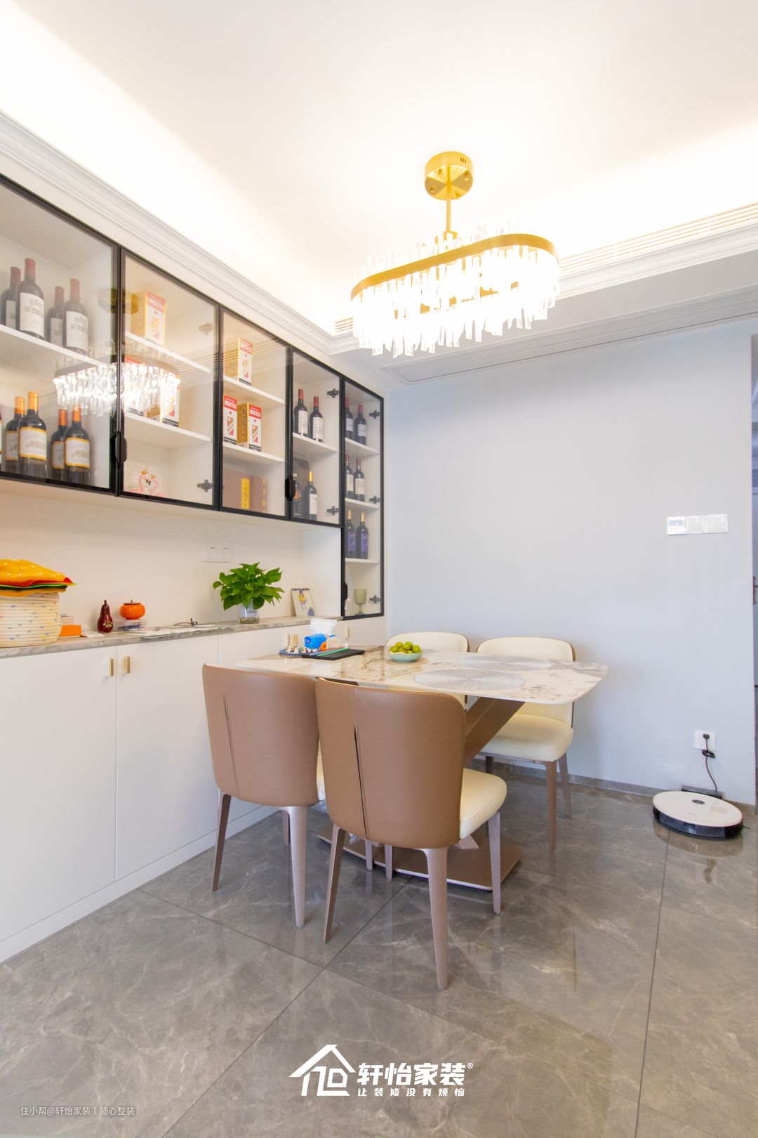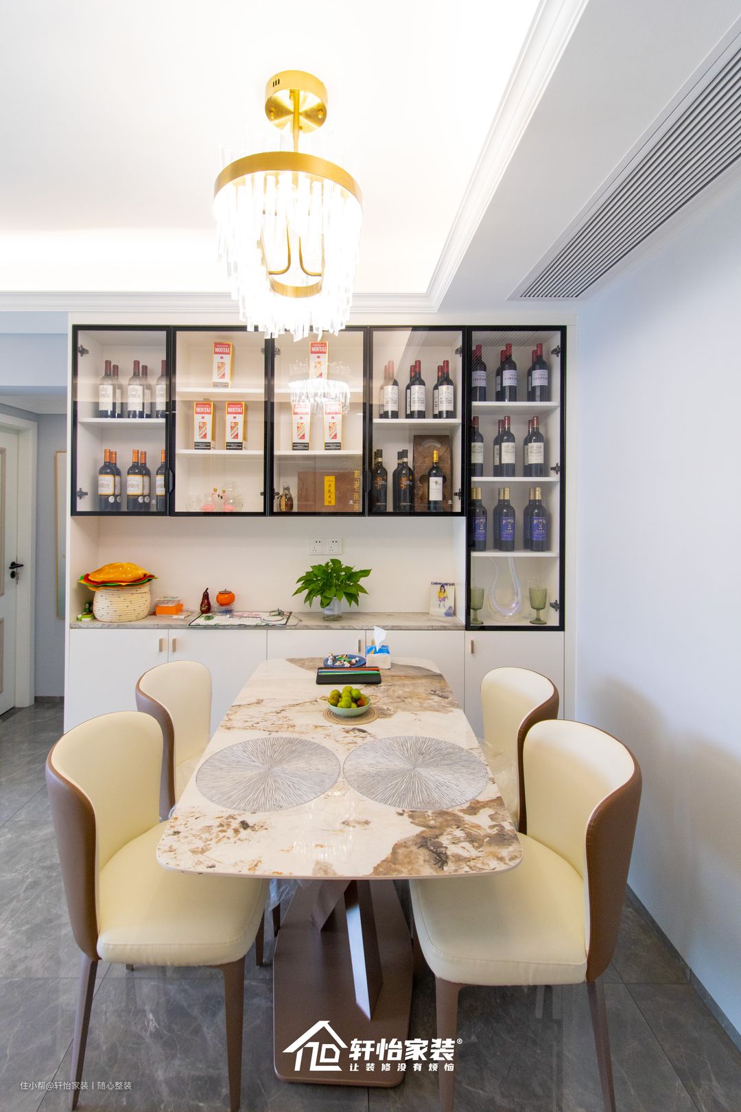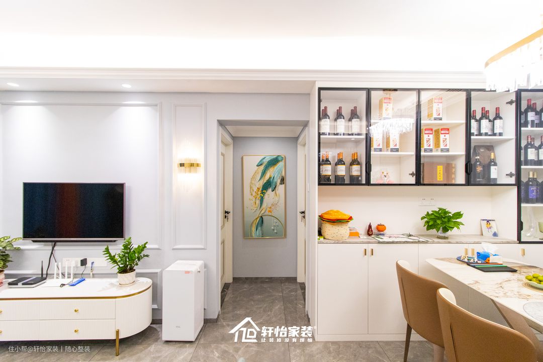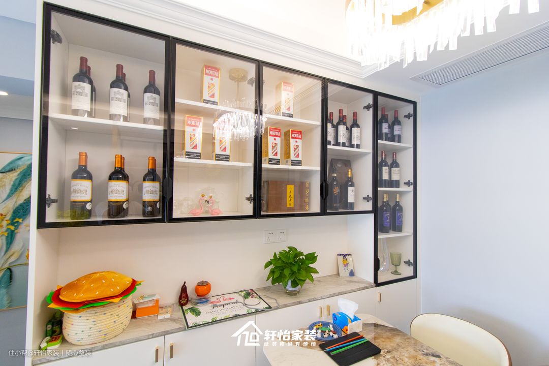 同时还预留到顶的红酒展示柜,满足各种酒类的收纳需求,不仅能凸显业主的生活品味,同时更能美化就餐环境,提升家居格调。
