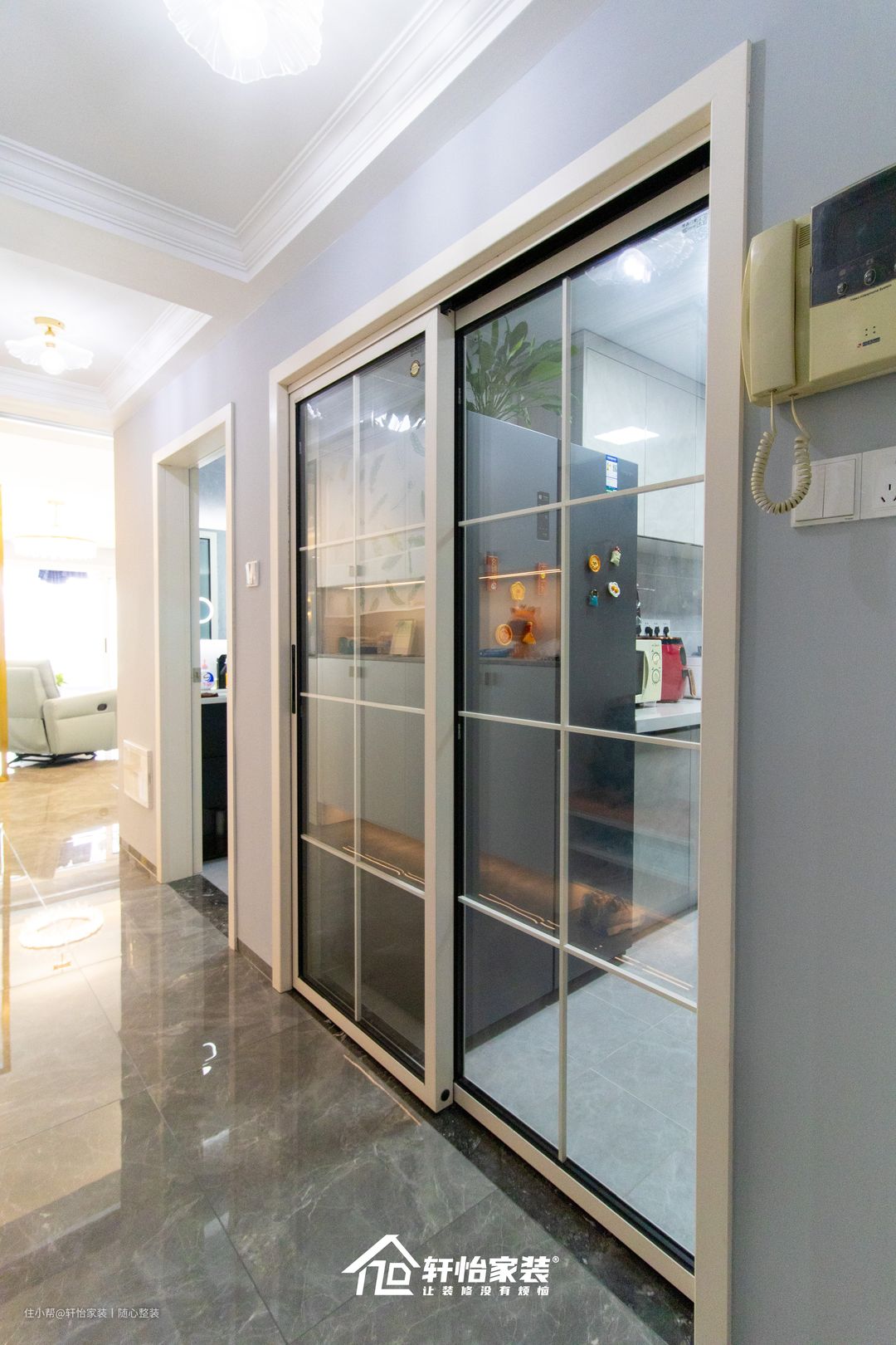 通透的空间是全家健康的保障,厨房的白框落地玻璃推拉门不仅颜值高,同时自然光的照射,完美解决厨房昏暗的问题,一进门就足以让人惊艳!