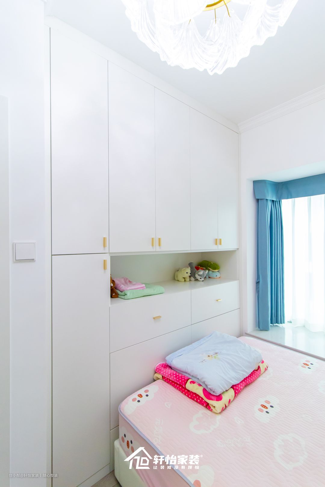嵌入式的到顶收纳柜,满足孩子衣物的需求,安全性高;同时柜体中间留空的设计,可随时放置/拿取物品,大大提升孩子的居住幸福感。