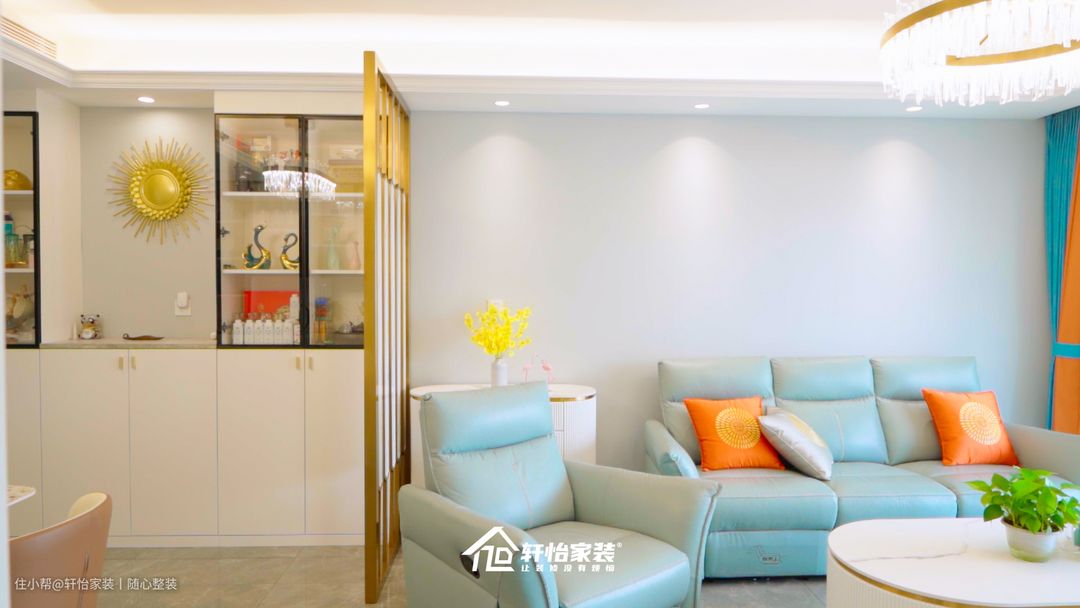 为解决玄关无收纳的痛点,设计师采用柜子代替墙体,打造整面到顶玄关柜+卡座换鞋区的一体化设计,柜体和底部均做留空,足以满足一家三口的日常物品和鞋物储放,整体空间保持整洁,不会因物件太多而凌乱不堪。