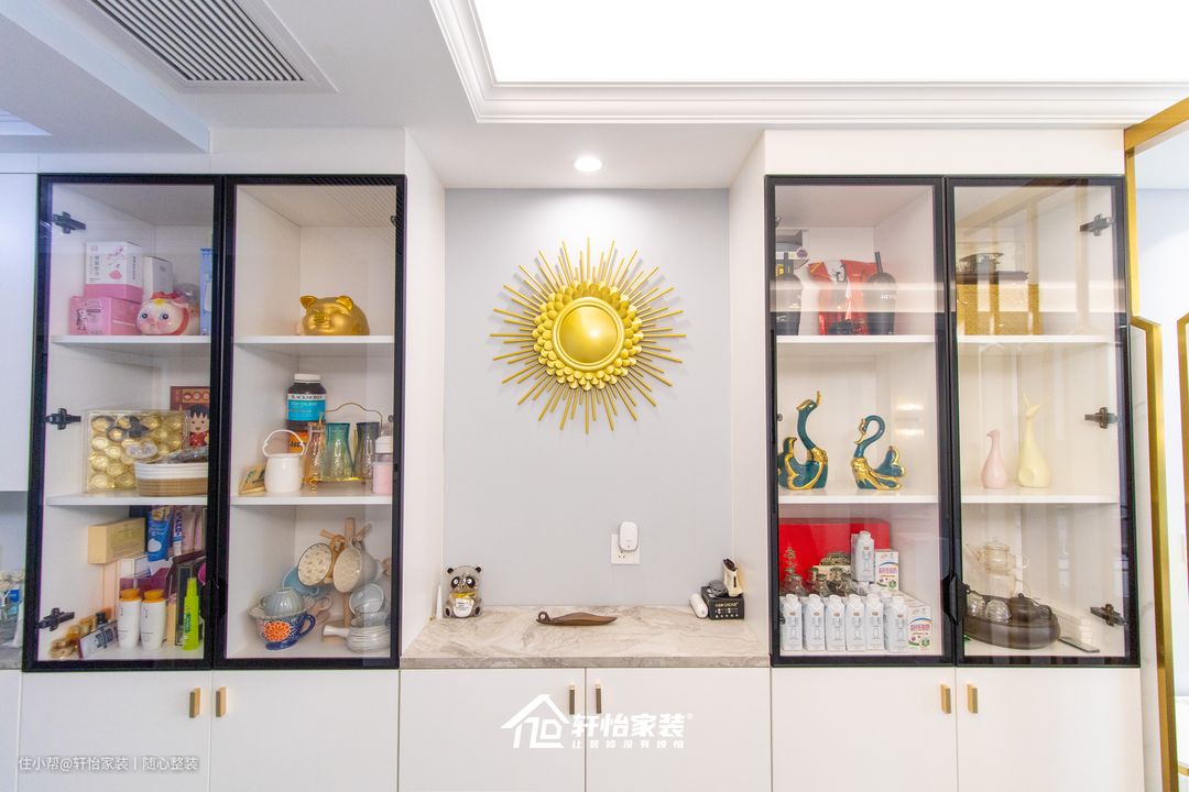 通过开放式收纳柜、透明格收纳等不同形式的柜子来凸显层次感,无论是作为收纳或者是装饰品的展示,都能给家人带来浓厚的生活氛围感。