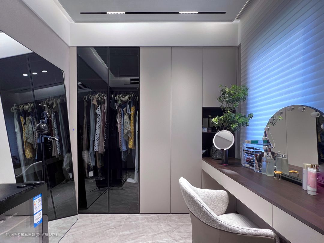 屋主的衣帽间收纳、摆放、化妆,功能齐全。