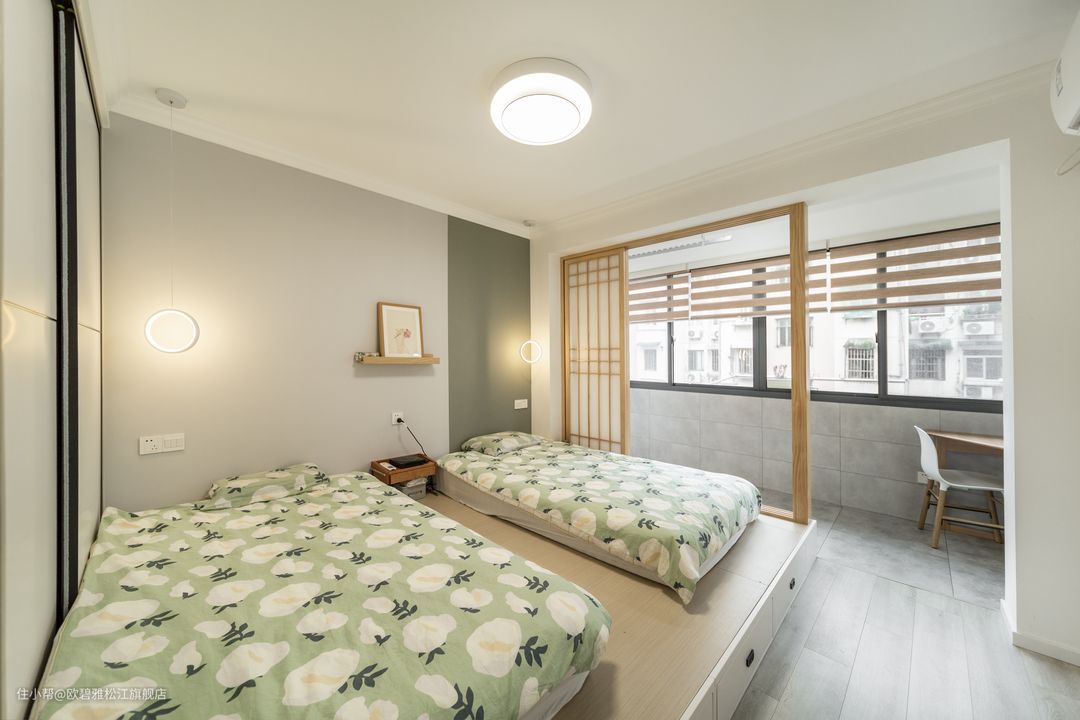 拆除卧室与阳台之间的墙体,设计一个推拉门来隔断空间,木质肌理搭配纸质最符合日式自然清雅的韵味,从而让室内的区域划分显得更加的明显有层次感,自然而又清新,绝对能够让你看一眼就爱上!